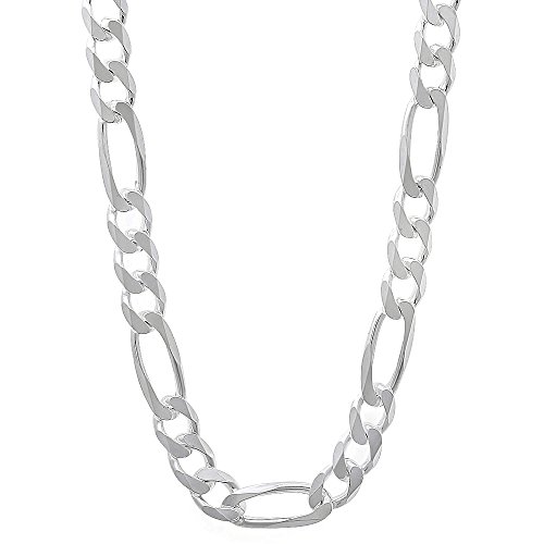 - This solid sterling silver open link style 5.5mm Figaro chain necklace is made in Italy extending to a length of 18 inches and finished in a sturdy lobster claw clasp