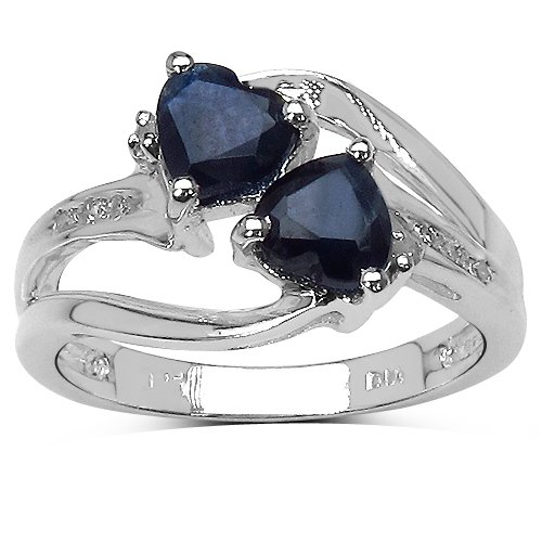 Best Seller! The Diamond Ring Collection: Beautiful Twin Hearts Engagement Ring. 2 Heart Shaped Black Sapphires with Diamond Set Crossover Shoulders in Sterling Silver (Size J) Review
