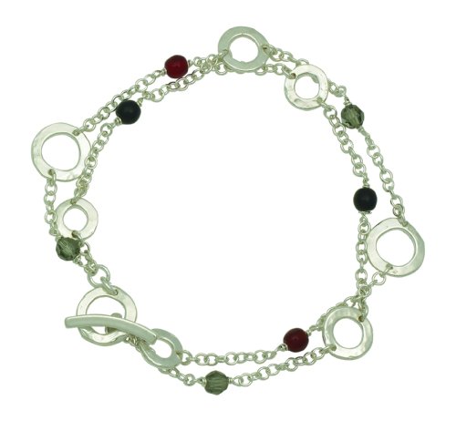 Best Seller! Inspired Silver 'Urbanite' Double Stranded Hammered Circles with Glass Bead Toggle Bracelet 19cm Review