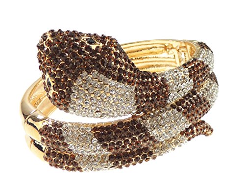 - Luxury Ladies Chunky Extra Sparkly Diamante Austrian Crystal Encrusted Snake Cuff Bangle Bracelet Amber Brown