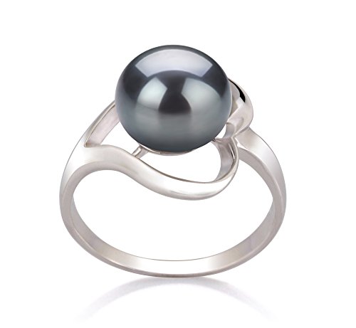 Best Seller! PearlsOnly - Sadie Black 9-10mm AA Quality Freshwater 925 Sterling Silver Cultured Pearl Ring - Size-O Review