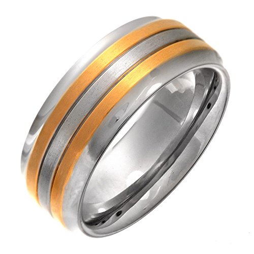 Best Seller! Theia Titanium Flat Court Shape Gold Coloured 8mm Ring - Size X Review